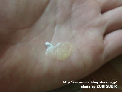 最初はなかなか出なかったんで、ちょっと焦っちゃいましたが(苦笑)、数回押してたら、真っ白なクリームがゆるゆるんと出てきました。